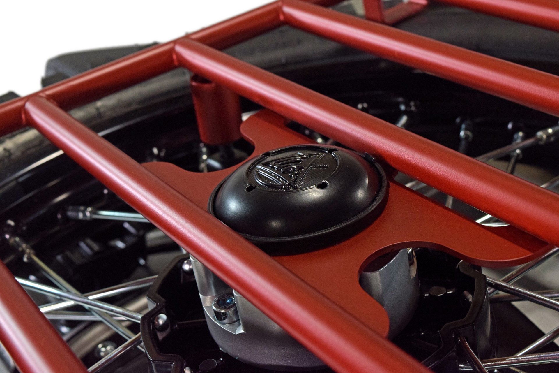 Ember Flame – eine hochwertige Terrakotta-über-Silber-Lackierung – suggeriert eine urbane Landschaft aus Stahl, Glas, Asphalt und glitzernden Lichtern und soll den Fahrer daran erinnern, dass Abenteuer überall erlebt werden können, sogar in deinem eigenen Hinterhof.
