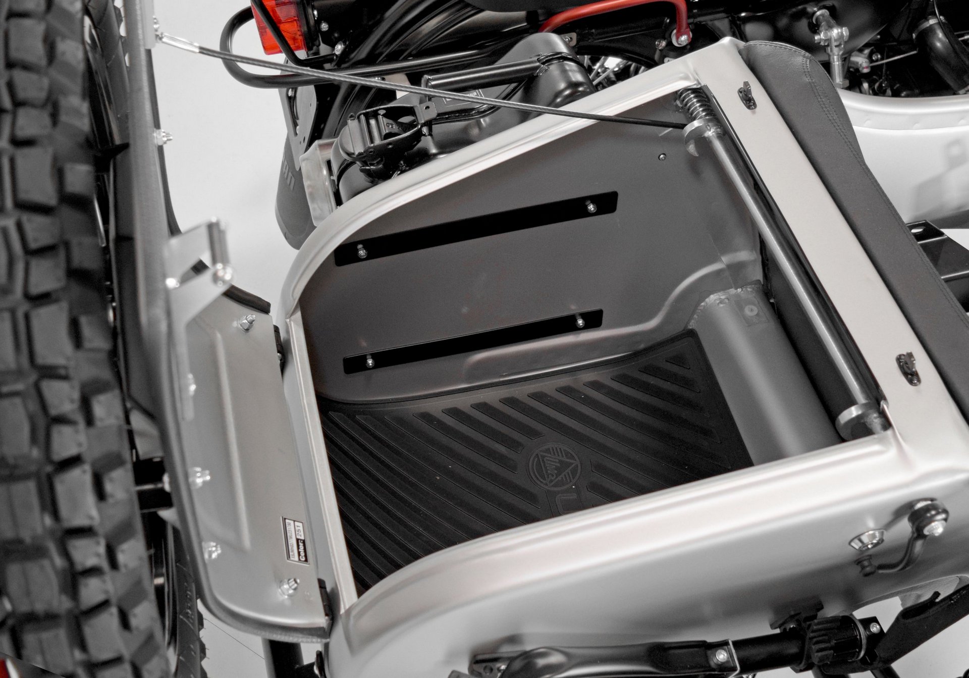 Zu guter Letzt: Die schräge Linie entlang des Beiwagens und des Kraftstofftanks, die die Farben trennt, neigt sich um 23,5 Grad, genau wie die axiale Neigung der Erde.